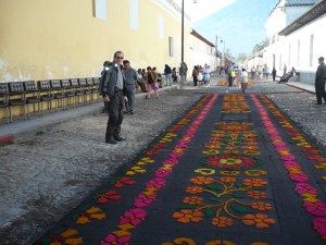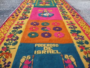Pero lo mas interesante de las celebraciones sacras en éste lugar y lo que le pone su toque original, son unos famosos “tapetes” ó “alfombras” que los vecinos de las calles por donde va a pasar cada procesión van fabricando sobre el camino empedrado, algunas veces trabajándolos desde la noche anterior, pues son muy elaborados.
