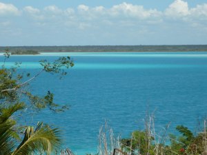 Continuamos rumbo a Chetumal (del maya, «Donde crecen los arboles rojos»), y el turístico lugar de Tulum, donde pasaríamos dos noches. Ya estábamos entroncados sobre una autopista bastante buena y rápida. Pero de repente, en un lugar cualquiera del trayecto, se abrió como en una película Holywood el paisaje acuático con los colores mas vistosos que puedan imaginar. Buscamos inmediatamente la primera salida que nos permitiera acercarnos y sacarle unas fotos.