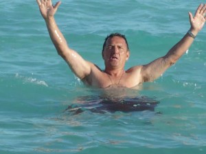 Una vez se nos apareció este paisaje como un espejismo y paramos a contemplarlo, decidimos que no había nada mas que hacer sino pasar una noche por acá. El lugar se llama Bacalar y está formado por varios «cenotes». La primera sorpresa se nos dio con ésta información: nosotros creíamos que era una entrada del mar, pero es un lago de agua dulce!! Estos cenotes son manantiales ó ríos subterráneos que alimentan el precioso «charquito«, llamado Lago de los 7 colores. Alrededor hay cabañas y hoteles, servicio de lanchas, paseos, etc. Hicimos un desayuno-almuerzo como a las dos de la tarde y nos dedicamos a disfrutar el lago. La temperatura del ambiente y la del agua se combinan para tomar un «baño de lago» de lo mas sabroso. Y mientras conversábamos de los mitos del combustible e insucesos del día, concluimos que también hay otros mitos y leyendas importantes que debemos registrar en estas crónicas.
