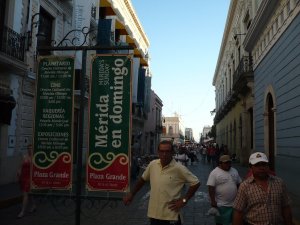 Mérida es una ciudad calentana con edificaciones coloniales bonitas. Como parte de las ocurrencias de uno de sus alcaldes, tienen permanentemente una programación especial denominada «Mérida en Domingo». Cierran las principales calles del centro de la ciudad y los restaurantes sacan sus mesas y servicios dándole un ambiente muy agradable.