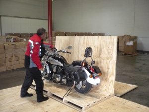 En la noche recibimos al primo Jorge y por consiguiente el martes en la mañana la tarea fue rescatar y desempacar su poderosa Kawasaki Vulcan 900 cc que venia, superempacada, en un camión desde Miami.