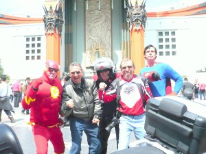 Al volver, nuevamente pasamos por el Boulevar, donde también hay toda clase de desocupados que con el disfraz de uno de los famosos artistas y héroes se ganan la vida a punta de fotos con los turistas. Recibimos efusivo recibimiento de Superman y Flash cuando nos parqueamos en frente al reconocido Teatro Chino, donde presentan las «premier» de la mayoria de las películas invitando a todos los otros actores y actrices, que nos alcanzó solo para la foto de paso, pues la policía nos estaba pidiendo pista en cuestión de segundos.
