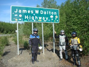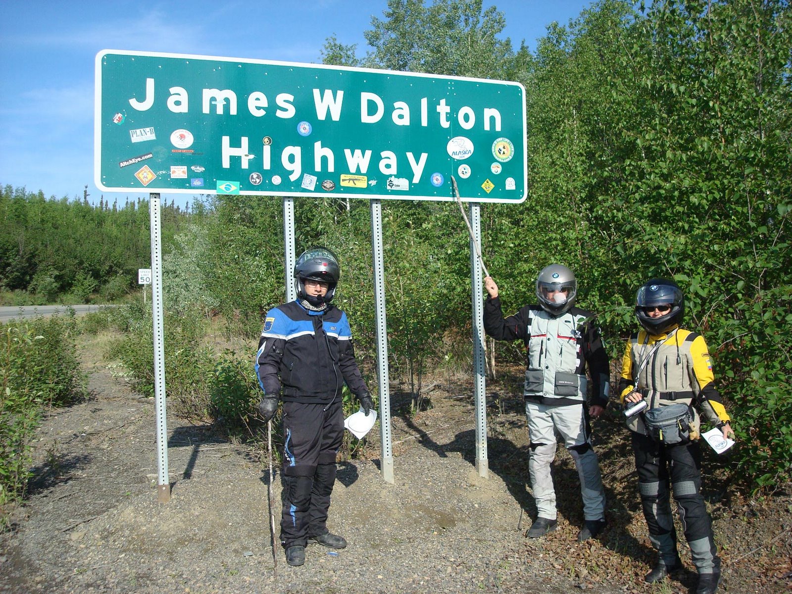 ! Y mas con la responsabilidad de llevar a alguien en el asiento. Pero bueno, después de empeparme y una buena noche de sueño me levanté con muchas ganas de tomar la carretera. Salimos re temprano, un día espectacular!! Aún no puedo creer la suerte que hemos tenido con el clima!!!! Un sol radiante, la temperatura era baja pero con la perspectiva de que iría subiendo. Tomamos la carretera con mucha ansiedad, un camino espectacular, desolado, claro era domingo. Llegamos hasta el punto donde consideramos era lo mejor tanquear, y nos cruzamos con otro motociclista. El tipo estaba desayunando, ahi solo con su Buell cargada hasta donde le daba el espacio. Charlamos un rato a sabiendas que nos cruzaríamos en el camino. El iba hasta Prudhoe. Tanqueamos, un poco de café y hagale! No pasó mas de una media hora cuando en medio del camino en unas curvas en forma de “S” se nos cruzó un moose!!! Mas asustado que nosotros corría de lado cruzando por la mitad del camino, nos hizo frenar casi en seco!!! Altísimo!!! Parecía como una jirafa sin el cuello, una forma de correr muy chistosa y una cara muy particular, salió corriendo hacia el otro lado delcamino y se metió entre los arbustos. Inolvidable. Pensamos que ibamos a ver muchos mas animales pero hoy fué solo este. Seguimos dándole duro hasta llegar a la entrada al Dalton Highway, después de las fotos reglamentarias y de dejar el sticker en el mismo, seguimos viaje. A los pocos km el camino se torna destapado, un destapado muy mamón. Era una gravilla que después se convirtió en arena, y al pasar de las retroexcavadoras dejan una pila de arena muy dificil de pasar. La moto va para cualquier lado, es temprano, acaba de pasar el camión con el químico que evita que se levanta polvo, acaba de pasar la retro y la humedad se mantiene. Sin embargo salimos aireosos.