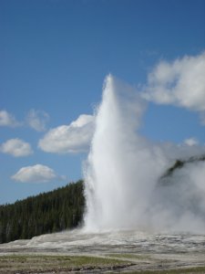 Este fenomeno natural que se repite aproximadamente cada hora consiste en una erupcion de agua hirviente que brota de la tierra y sube unos treinta metros de altura envuelta en el vapor que produce…Es tan imponente que los gringos le armaron tarima todo alrededor para que la gente se siente a esperar la erupcion y volvieron «show» el espectaculo natural…No se como expresarlo pero le sobra «urbanizacion» a este parque ..Creo que si no fuera tan «organizado» este parque seria alucinante.
