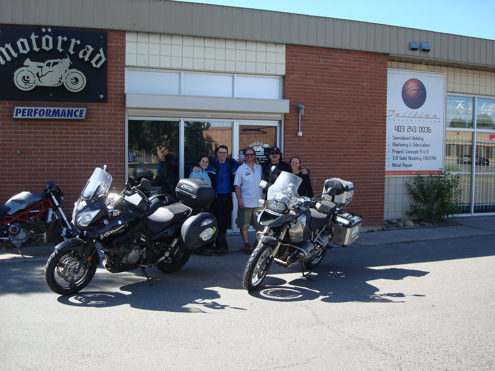 Fuiimos por las llantas al almacen y Paul nos indico un lugar para almorzar subiendo una pequenia colina…la hago corta,nos invito a gaseosas antes de salir, nos abrio un campito para dejar todas nuestras cosas en el taller (cascos, chaquetas,tank-bags,etc etc).. empezabamos a caminar cuando salio del almacen y nos dijo :yo los llevo…pues no solo nos llevo , nos ayudo a elegir el menu ..Al regreso luego de hablar con Mauro Angulo desde la pizzeria, las motos estaban impecablemente listas la cuenta por 10 menos de lo cotizado y varios regalitos para cada uno de nosotros..Su taller Motorrad es chiquitico tiene como unos 5 puestos de trabajo…y superorganizado.