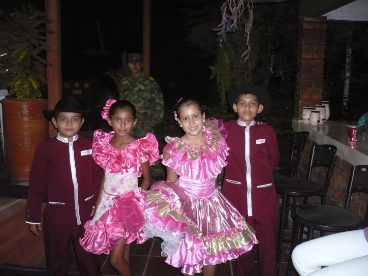 Pero Los Pijoteritos de esta crónica son unos niños muy simpaticos que conforman un grupo de baile de joropo llanero, a los cuales tuvimos la suerte de conocer solo Arturo y yo, pues se estaban presentando en el Hotel, en un homenaje militar, la noche de nuestra llegada. Los otros viajeros, quienes venian en los carros, se perdieron el show pues llegaron dos horas despues. El grupo está dirigido por Lorena Alvarado y lo conforman Argencio, Isabela, Blanca y Pedro.