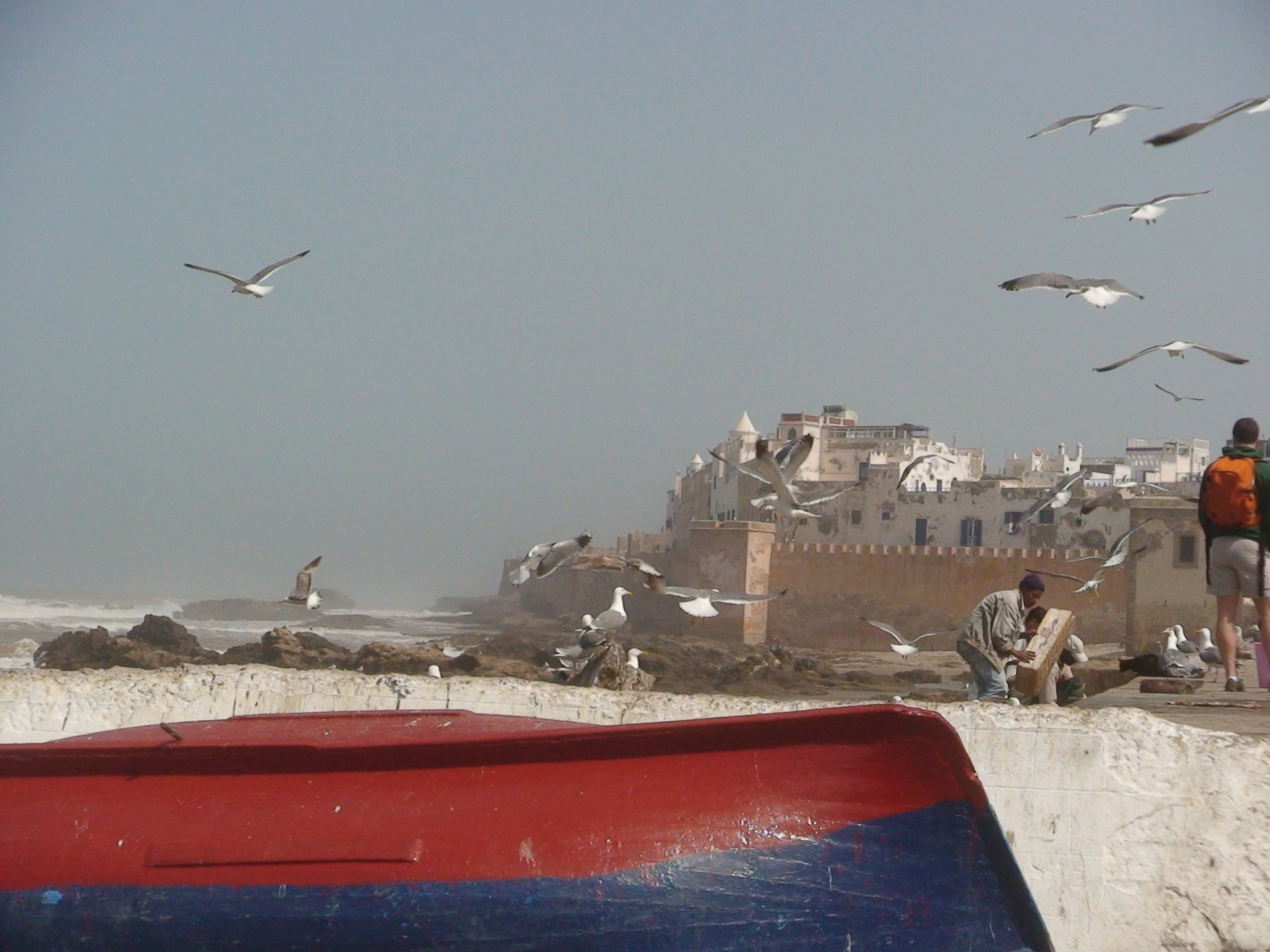 La palabra árabe Essaouira traduce pequeña fortaleza amurallada.( En otros lugares encontré una traducción como “bien diseñada”) La ciudad fue de origen fenicio que la fundaron en el siglo 7 antes de cristo, pasó por manos romanas y portuguesas y hasta la independencia de Marruecos se llamó Mogador.