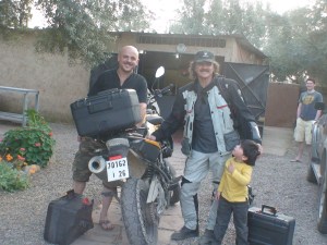 Tim, al que no habíamos conocido sino por mail, llegó también en ese momento en una KTM, de un training en cercanías de Marrakech, con un ingles.Era el segundo de tres días de entrenamiento y el dia anterior otro de los ingleses se accidentó, rotura de cadera y esta en el hospital esperanado la autorizacon para viajar de regreso a Londres. No se trato de un salto excepcional o de rocas gigantescas que haberlas, las hay… Simplemente frenó mal, bajo la pierna, se metió dentro de un hueco y la moto le cayo encima…