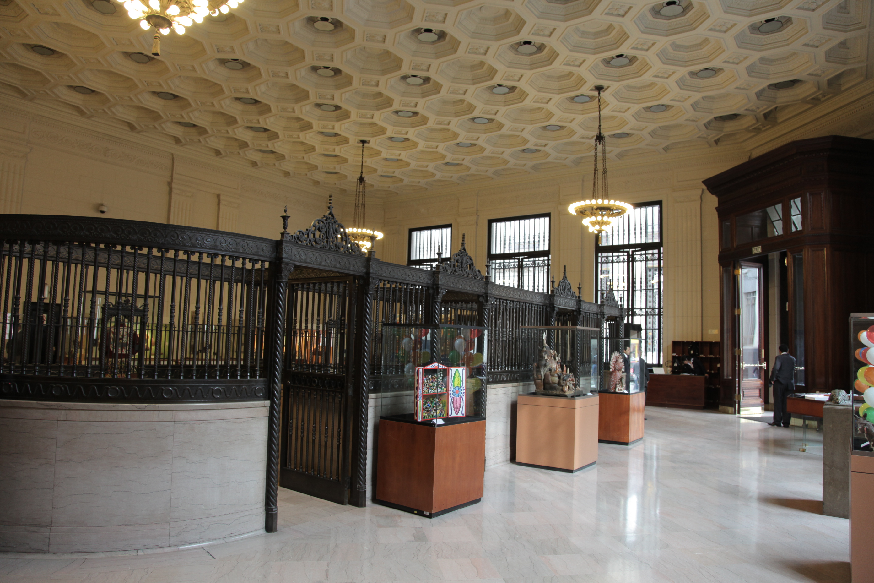 El museo del banco central fue muy lindo de ver tambien, montado en un antiguo edificio de banco con sus rejas, parecia un set de una pelicula del viejo oeste. En general la arquitectura limena es muy bonita. Los balcones de las edificaciones resaltan de otros centros historicos que hayamos visto. La plaza central ademas, tiene mucho verde. Palmeras, pasto, lo que nos llamo mucho la atencion.