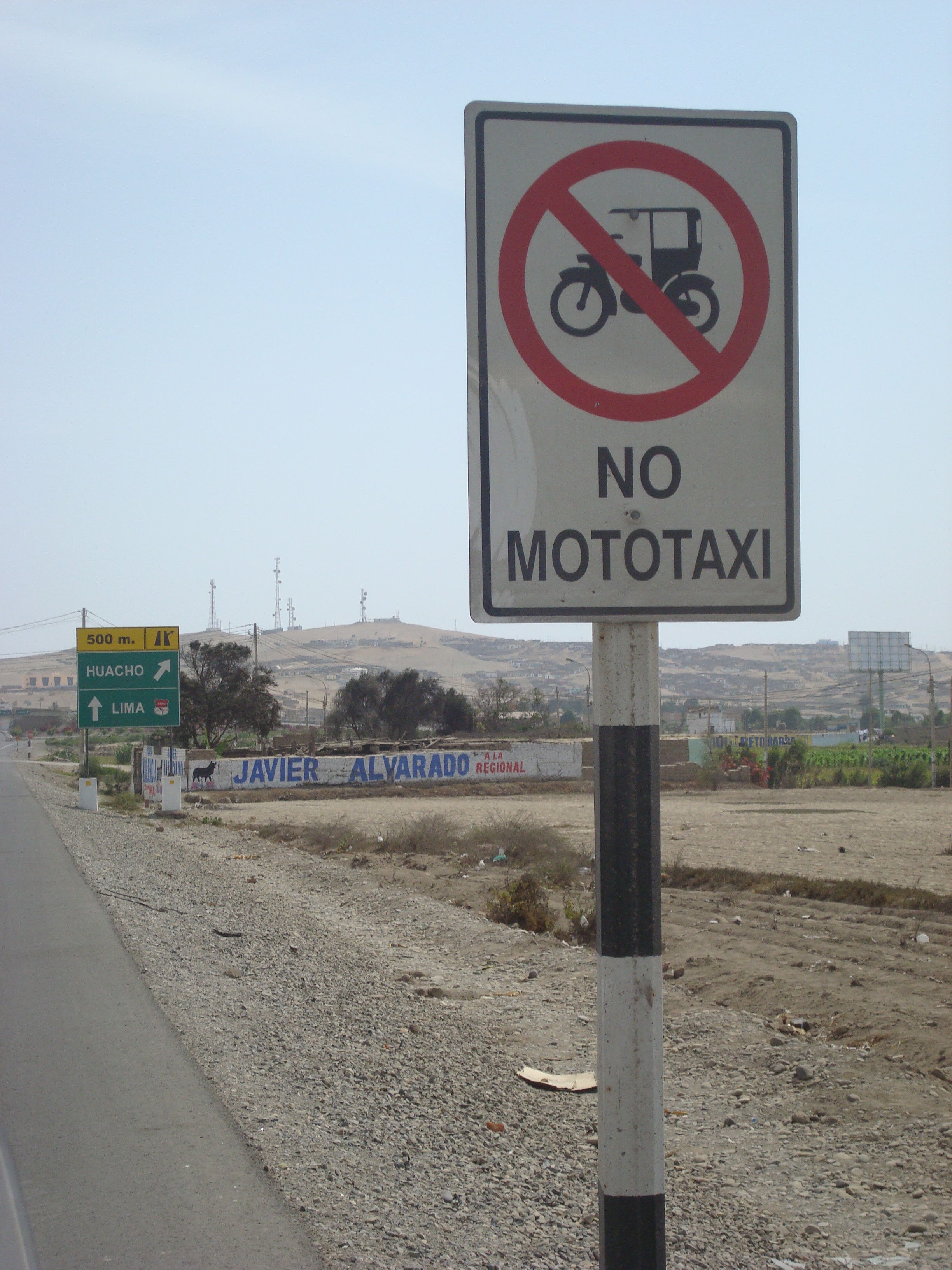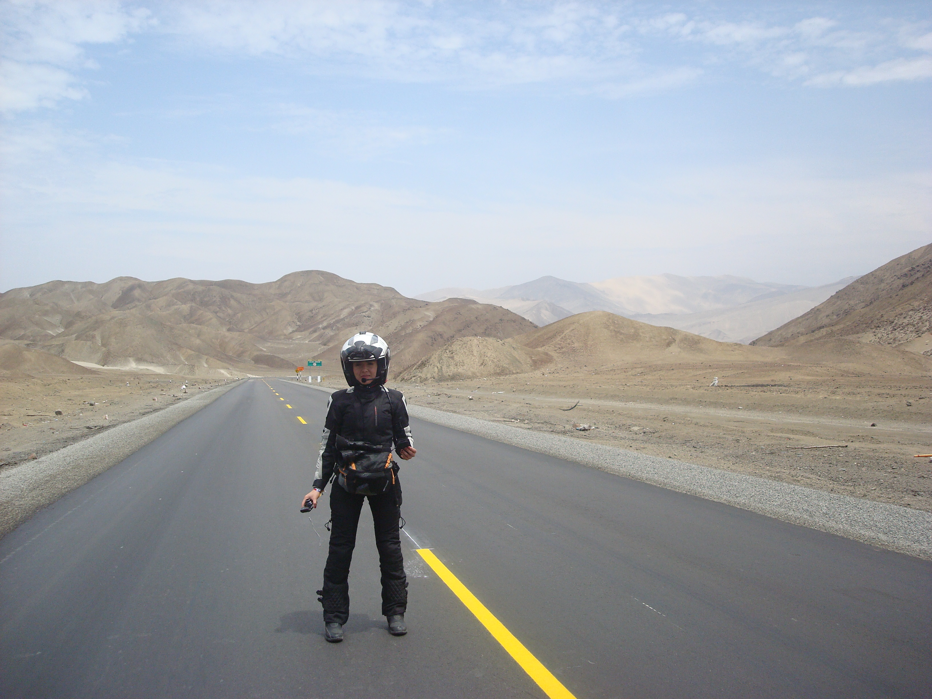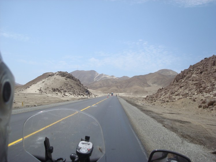 El GPS nos marcaba una ruta muy simple, sonaba bastante bien. El problema, la panamericana esta cerrada por construccion. Ahi empezo cristo a padecer. Ruta o desvio que tomabamos ruta que estaba en construccion. El caos era total. Buses, tractomulas, colectivos, taxis y particulares se echan encima los autos los unos a los otros. No hay un carro sano. Mas de una vez pense que el bus nos iba a ensanduchar. En la autopista los carros van sobre los andenes, las entradas y salidas estan innundadas de violencia y agresividad. Inclusive una ambulancia que iba cerca nuestro decia por el altavoz, Denle paso a los Motociclistas!!! Todo fuera de control. Estuvimos 2 horas y media tratando de llegar al hotel, esquivando cuanta amenaza se le pueda ocurrir a uno. Finalmente lo logramos, llegamos molidos, cansados, sorprendidos de lo ordenado que es el trafico bogotano al lado de este caos. Pero ya era tarde para ir directo al taller. Tonny cayo al rato con sus amigos Fernando y Joso, unos bacanes. Compartimos historias y nos encomendaron con el taller que por casualidad de la vida estaba a 8 cuadras del hotel. La de hoy fue una gran experiencia. Se ponen nuevamente las cosas en perspectiva. En un momento, un bus que iba a mi derecha queria doblar a la izquierda desde el tercer carril. A la izquierda teniamos un colectivo. Pite como loco con la bocina volquetera que tengo, el tipo ni se inmuto. Obvio, aca todo el mundo la tiene y ya hace parte del paisaje. Acelere para pasar al bus antes de que nos arrollara, pero en la zona de construccion en la que estabamos habia mucha tierra. Solte el clutch y acelere a fondo, solo para darme cuenta que en el piso la rueda giraba sobre su eje sin avanzar. La moto coleaba hasta que de milagro encontro grip, pasamos rozando al bus que giraba. La adrenalina se subio al mil, el tacometro media los latidos del corazon. Me sentia peor que manejando en la variante de la 13 o la decima en Bogota. Esto es ya demasiado. Para los que nos quejamos, es un recuerdo que uno no sabe lo que tiene hasta que lo pierde o que todo en la vida puede ser peor, NO SE QUEJEN. Tonny y su amigo Fernando tambien tardaron 2 horas y media entrando del Cañon del Pato. Y eso que venia con un local! Finalmente estabamos en Lima. No muy contentos con la bienvenida que nos dio y mas con ganas de irnos que de quedarnos. Sin embargo mañana las motos entran al taller, al mantenimiento preventivo y a ver que nos dicen de la moto de Julio. Una vez en el hotel, nos dimos cuenta que en la pagina decia estacionamiento, pero en la realidad el estacionamiento es una bahia exterior frente al hotel. Al reclamarle a los empleados nos enredaron diciendo que aqui en Peru estacionamiento es eso. Tan bonitos como enredan! Fer, el amigo de Tonny, hablo con el gerente y al cabo de algunos minutos nos dejaron entrar las motos por el lobby y por la entrada de servicio. Nos advirtieron igual que roban bastante especialmente esas motos que casi nos se ven en el Peru. Y es cierto, solo hemos visto una y era del tipo de Armenia en Mancora. De resto no hemos visto V-stroms, ni ninguna moto grande. Excepto una que otra KLR. El caos de hoy contrasta con el paisaje tan hermoso. Es el contraste de lo que ha sido Peru. Un sabor agridulce, a veces espectacular y otras veces un caos total. El Norte que es lo que hemos conocido parece la Guajira colombiana. Desierto cabras y rancherias adornan el paisaje. No se ven Wayus, pero podria haberlos tranquilamente. La basura sigue siendo un problema. Hay basura por todos lados, pareciera que no tienen un sistema de manejo en absoluto. Lo mismo los mototaxis. No se puede creer la cantidad que hay. El negocio en Peru es una de dos, o comprar un moto taxi y ponerlo a camellar, o ser importador de las motos chinas con los que lo hacen. A veces parece que el pais esta fuera de control.