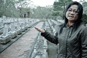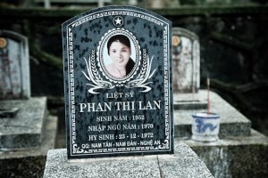 Las tumbas, organizadas por grupos de acuerdo a las provincias de origen, tienen todas algo en común. En lo exterior, la forma. En las inscripciones, las edades. Todos estos mártires solo tenían entre 19 y 22 años. Vietnam perdió una generación entera de hombres y mujeres en éste conflicto. Existe un gran monumento en cada área del cementerio, donde se puede ofrecer un poco de incienso para todos los que allí reposan; hay también un pequeño jarrón en cerámica en cada lápida para aquellos que quieren llevar directamente el «alimento» a su familiar o amigo. Siguiendo la respetuosa ceremonia de la Sra.Thach, conmovidos de sentir en una mínima parte lo que ella nos estaba narrando, sin resentimiento pero con una rabia que se nota hasta en sus sonrisas, solos en este gigantesco cementerio, no dejamos de acrecentar nuestro respeto por este pueblo.