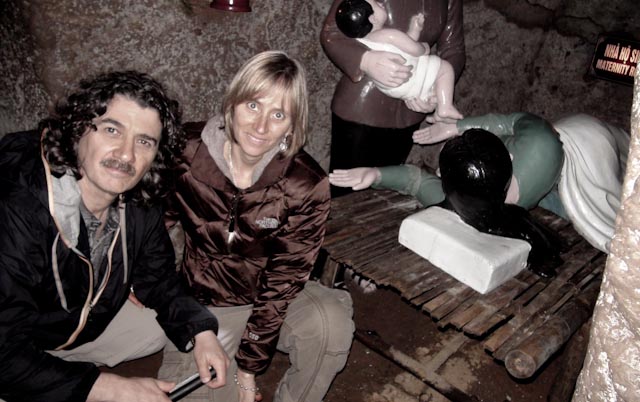 De allí seguimos a los túneles de Vinh Moc. Una prueba del ingenio del hombre para buscar como sobrevivir al terrible destrozo de las bombas que desde el aire acababan con un país. Desde 1966 a 1971 en éstos túneles, unas 300 personas pasaron sus noches. Vivieron allí metidos, en galerías subterráneas que llegaron a tener tres niveles de 12, 15 y 23 metros de profundidad. Nacieron bebés, vieron cine, comieron etc, etc. Durante el día, algunos laboraban la tierra y en la noche ó ante la alarma de bombarderos se refugiaban llegando a través de una intrincada red de trincheras, cavadas con las herramientas mas elementales y ventilados por los Americanos, contradictoriamente, quienes con sus bombas de perforación abrían huecos a gran profundidad.