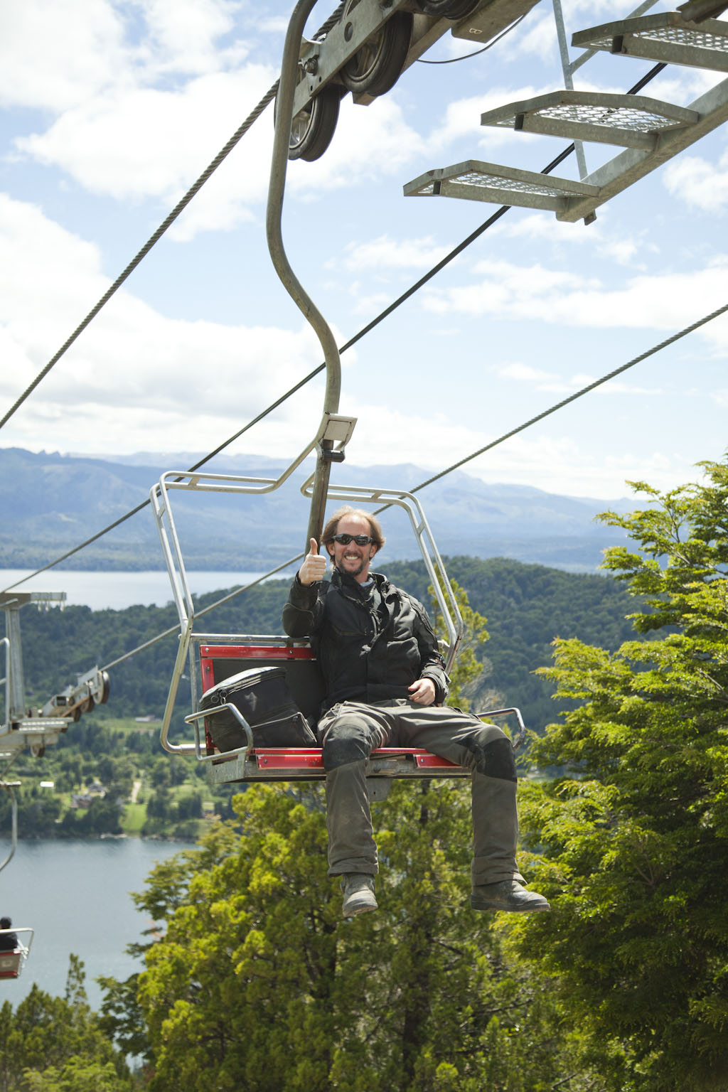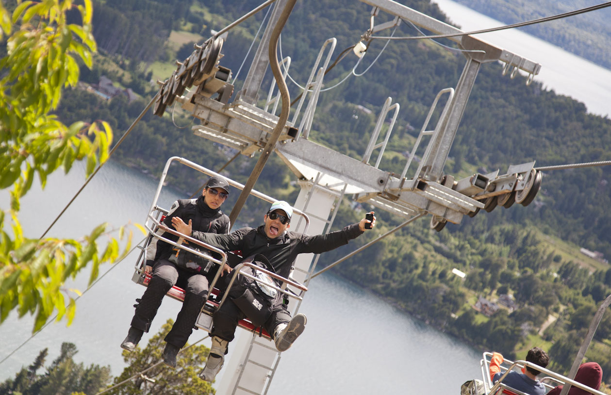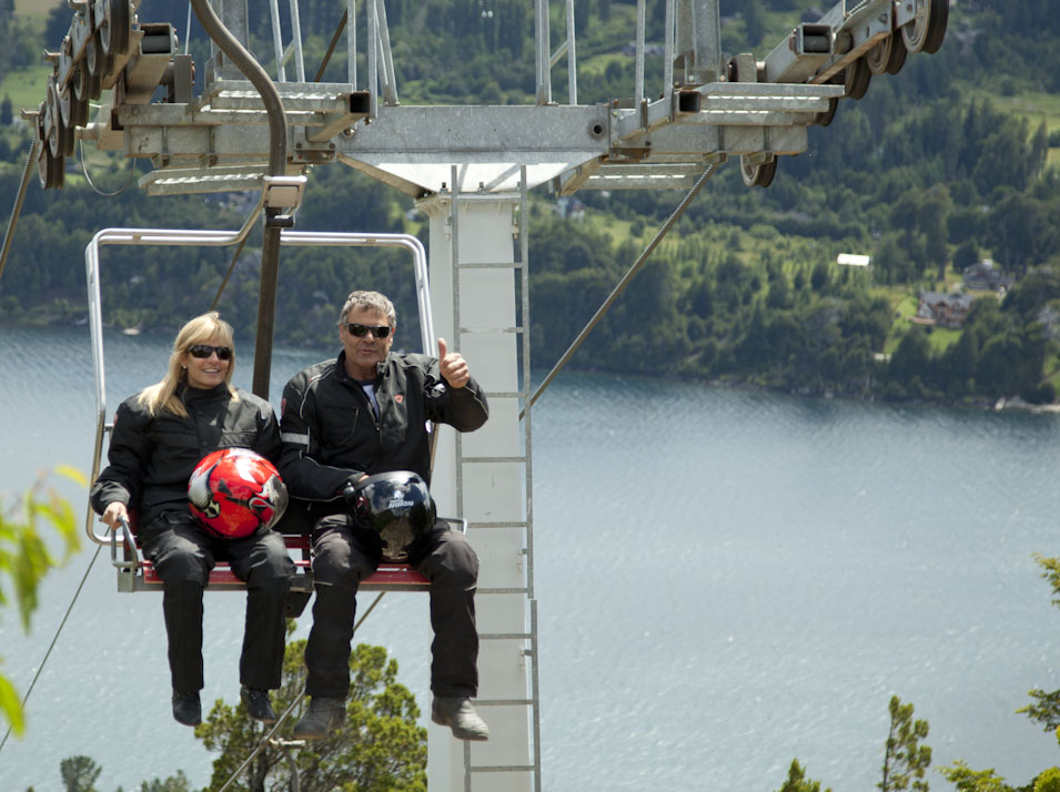 Despues de intercambiar fotos con Tonny salimos a cargar las motos. Ya estaba decidido que haríamos el circuito chico y después miramos a ver a donde llegamos. El desayuno del hotel estuvo medio chimbo, como los desayunos normales argentinos. Igual no salimos con la panza vacía. Sacamos las motos de la cochera y en par patadas estabamos listos para salir. El tema hoy era que Tonny andaba evidentemente bajoneado, nuestro último día parchando juntos y como él mismo dice: Uno se acostumbra muy rápido a las cosas buenas. Nos dijo que eramos un buen grupo de personas y que estaba gratamente sorprendido que hubieramos encajado asi de bien y entablado tan buena relación en el poco tiempo que compartimos. Y era por lado y lado. Viajar con él estuvo muy chévere tambien! Y esto, sin querer queriendo, se convierte en una nueva parte del viaje. Compartir con la gente que nos vamos cruzando y despedirnos de ellos también. Intentó por todos los lados convencernos de ir hasta Ushuaia con él, y la verdad es que yo lo consideraba. TonnyPero es que es MUUUUUUUY lejos!!! Aún cambiando de ruta yendose por la costa era muy pesado e interminable. Además traía problemas complejos en la logística del grupo. Andrea tiene que volver pronto a Buenos Aires, Las llantas y el aceite habría que cambiarlos, tocaría extender un poco las vacaciones y ya nos sentimos dándonos garra con el tema. La idea de seguir viajando nos encanta, pero hay que ser realistas con todo y decidimos que mejor era no cambiar de rumbo y cumplir con el objetivo propuesto. Además no tenemos idea de cómo será el tema del envío de las motos, lo cual puede ser otro tema una vez estemos en Buenos Aires. Así que sabemos que hoy nos separamos y ya nos esta dando nostalgia, aunque racionalmente sabemos que todo es parte del viaje y que lo negativo de despedirnos es minúsculo al lado de todo lo que compartimos y lo que compartiremos, porque todos esperamos seguir construyendo nuestra amistad. Como ha sido el caso con Gonzalo, quien nos adoptó en nuestro primer viaje solos y que se portó de 10! Tanto así que lo apodé Tio Gonza y hoy tiene mas sobrinos de los que quisiera soportar. Arrancamos nostálgicos entonces con los últimos kilómetros que los Viajeros del Sur, harian hacia ese punto cardinal. Tomamos la ruta que bordea Bariloche y al lago Nahuel Huapi en dirección al cerro catedral. BariloxsPasamos por una mano de hoteles que se ven espectaculares a orillas del lago y que serian buena opción para una estadía mayor por esta zona. El camino estuvo lleno de reflexiones a causa de lo emotivo del día además porque ya pocos días quedan para llegar a Necochea donde nos esperan mis tíos y un ambiente familiar y caras conocidas. Llegamos a la aerosilla del cerro catedral, estacionamos y decidimos subir a echar un ojo. Una vez arriba la vista es de locos, adjunto un par de fotos en el blog. Desde cerro catedralEs realmente hermoso, el viento que da en la cara es helado completamente, viniendo de los nevados que lo bordean y del lago imponente e inmenso que es el Nahuel Huapi. A lo lejos se aprecia tambien el famosisimo hotel Llao Llao, el mas famoso de toda argentina con una ubicación privilegiada en medio de un paisaje alucinante. Recuerdo cuando vine a Bariloche hace muchisimos años, y en aquella oportunidad vinimos a acampar. Caminamos por toda esta zona y mi recuerdo me dice que los nevados estaban mucho mas blancos de lo que se los ve ahora. Going up!Es una lástima ver como todos esos picos que alguna vez tuvieron nieve (aun en verano) hoy en dia les cuesta mantenerla. Hay gente que aun hoy discute el tema del calentamiento global, deberian venir a echar un ojo y mirar una retrospectiva. No solo aquí, basta con recopilar las noticas que hemos visto a lo largo del viaje, cada pais tiene sus temas con el clima como si lo de un pais no incumbiera con el otro y no fuera el mismo mundo en el que vivimos. Tonny, Horacio, Graciela, Julio, Camila, Andrea y EstebanRecordando que en Colombia esta que llueve como no llovia en 40 años y en Perú hay unas sequías como no las habia en no se cuantos, en Bolivia el salar ya debería estar inundado y en Argentina durante diciembre se rompieron todos los records que habia! En fin, continuamos dandole la vuelta al circuito chico donde vimos que Bariloche ha crecido un monton, dejó de ser un pueblo chico y ya es toda una ciudad y eso se ve como crece hacia la periferia. Suponemos que esto se debe mover tanto en invierno como en verano porque en ambas estaciones ofrece cosas para hacer. Paramos después de conocer el exterior del Llao Llao en un mirador. Nos tomamos algunas fotos y decidimos retomar el camino hacia Bariloche. En el camino encontré un lugar de pizzas y empanadas perfecto para una picadita antes de tomar rumbos diferentes. Graciela & HoracioLa compañía de Horacio y Graciela estuvo muy grata. Resultaron como todos, ser muy buena onda y descomplicados. La pasaron bien con nosotros tambien. Pedimos empanadas caseras que estaban deliciosisimas. Sin embargo nos pasó lo mismo que nos pasó el dia de ayer y que no anotamos en el blog. Ayer al llegar al suizo nos dijeron que no habia mesa para 7. Julio y Andrea entonces decidieron ir a comer helado y eramos 5. Tampoco habia mesa. Luego nos dijeron que se abriría espacio y que nos la iban a preparar, pero no podiamos seguir al salón hasta que no estuviera lista la mesa. Camila iba y venia y no entendía por qué no nos dejaban pasar. Habia una mesa perfectamente acomodable para sentarnos pero no la tenian disponible para nosotros. Al cabo de un rato se desocupó otra mesa y luego sí nos dejaron sentar allí. Muy complicado! Y ahora que llegabamos a un restaurante de carretera, ocupado en un 35% teníamos el mismo problema. Nos podemos sentar alli?? No, respondio el dueño. Debe esperar que el mozo le arregle una mesita. Pero si es correr esa silla al lado de la otra!? NO!! No se preocupe que el mesero ya le alista l