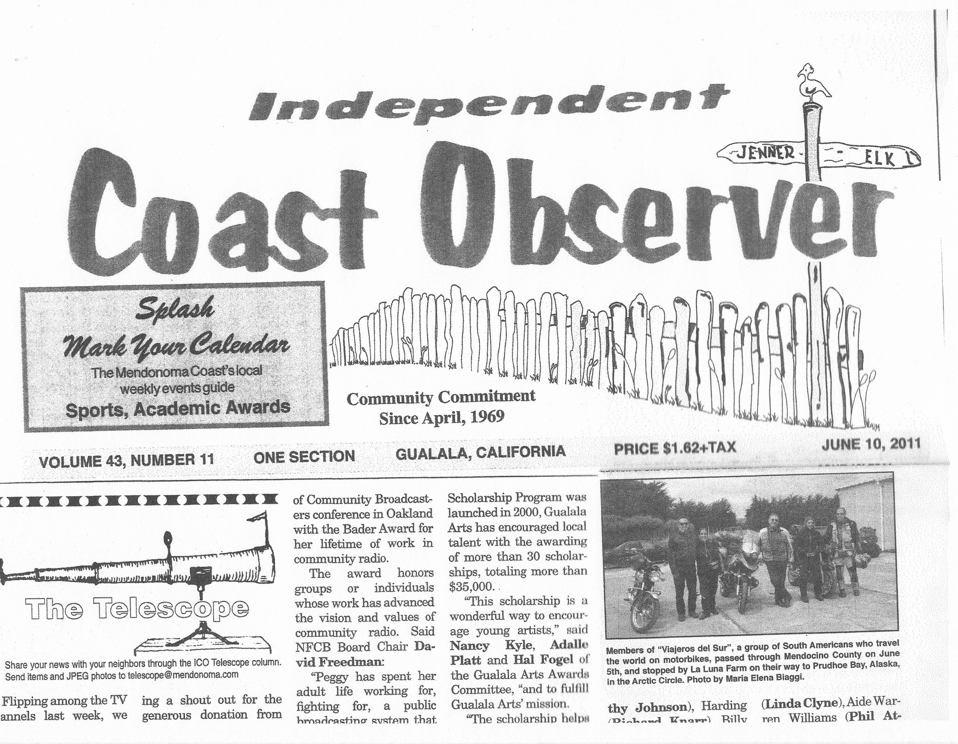 1. Uno de los diarios mas prestigiosos e importantes de la costa Oeste de los Estados Unidos. Circula en Manchester, CA (654 habitantes) y dos pueblos circunvecinos mas.