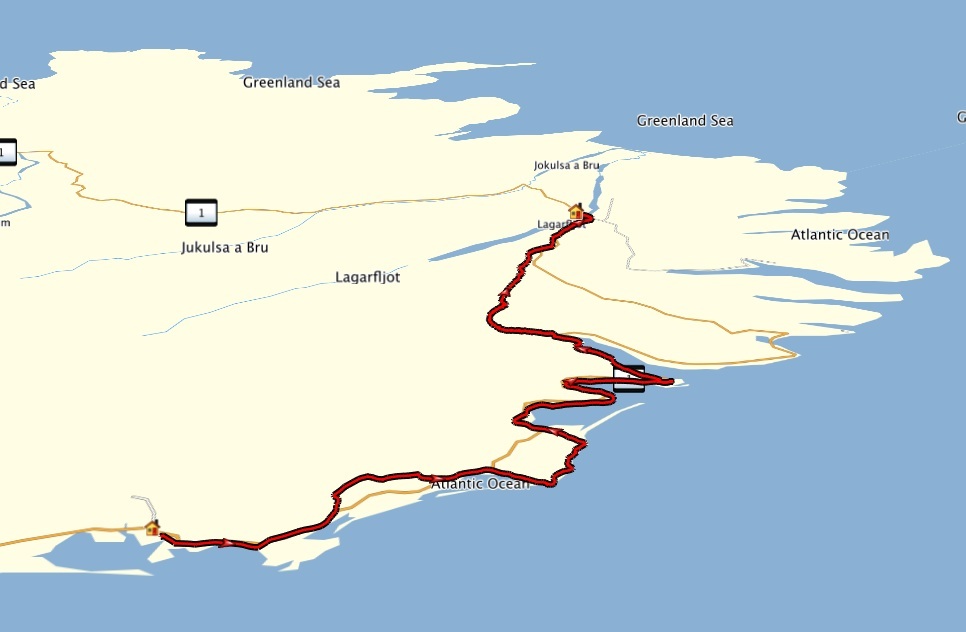 Aqui es importante una aclaracion.islandia tiene una ruta que en forma de anillo le da la vuelta al pais en sentido circular:Ring road.Es asfalatada en su mayoria, aunque en el norte por las condiciones climaticas en el invierno no se logra pavimentar y permanece en ripio.