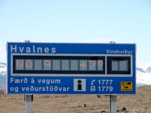 Los viendo que bajan desde las montañas hacia el mar son fuertisimos y empezamos a notar la presencia de carteles luminosos que indican la velocidad del viento y la temperatura.Sobre los caminos que hemos recorrido en estos dos primeros dias cada tanto hay estaciones meteorologicas que envian la info al sistema de meteorologia de Reykjavik.Pequeñas torrecitas con instrumentos y paneles solares.Bueno entendimos el porque de esta informacion.se trata de una advertencia sobre las condiciones a encontrar en el camino mas que un tema simplemente informativo.