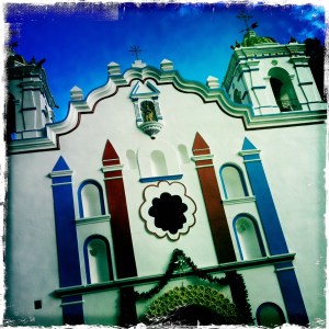 Para poder pasar las puertas de la iglesia se debe pagar a la comunidad 20 pesos mejicanos por persona. Pasamos la puerta…. y allí fue otra cosa!! Un amplio espacio inundado de rayos de luz, humo y el olor acre de cientos de velas. Una iglesia sin bancas en la que los indígenas, en grupos, cada uno alrededor de un chaman, realizan ritos curativos. El piso entapetado de pinos frescos, las paredes con una sucesión de altares con imágenes de santos y flores.