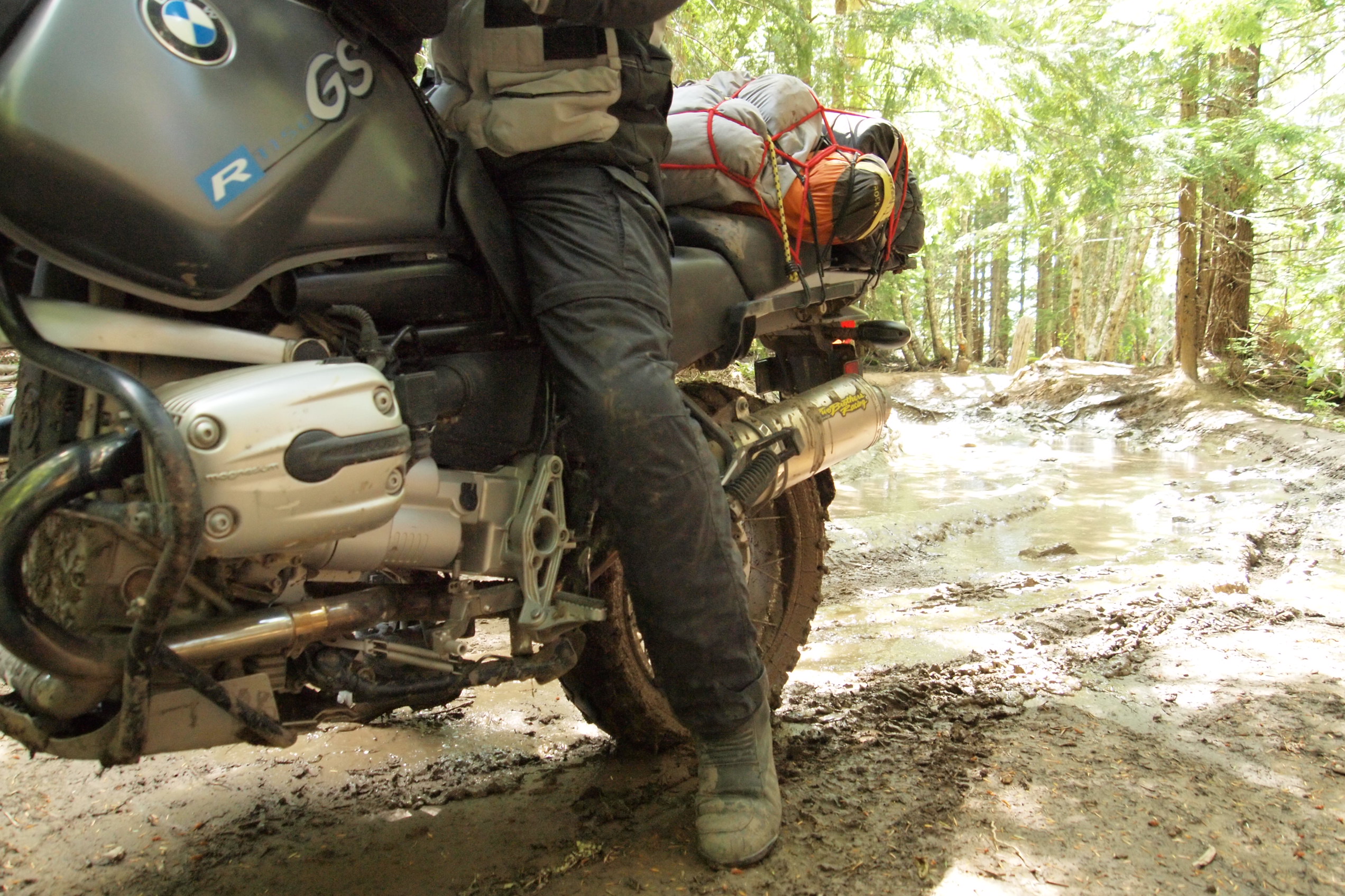El volcan de 15,000 pies de altura está rodeado por «Jeep Club Roads». Trochas por donde frecuentan apenas unos pocos 4×4 y algunas motos en los pocos meses secos del año — de Junio a Septiembre. A partir de octubre, se complica la pasada de los Cascades (cordillera que separa el húmedo washington occidental con el árido estado oriental) para la moto y abre la temporada para el snowmobile, el sno-cat (esos mounstros enormes que parecen un bulldozer en la nieve, se ven acá cruzando el Pyramid pass que hizo parte de nuestro recorrido de hoy), y los Jeeps con cadenas en las llantas. Los trochas las llaman mucho Jeep Club Roads, porque en esta zona ha pegado mucho el paseo en Jeep «engallado». Los Jeeperos de Washington son el equivalente de los «Saltamontes» en Colombia. No conociamos realmente que tan engallados pueden llegar a ser hasta que entramos en estas trochas y encontramos campamentos enteros de Jeeps y camionetas 4x4s con suspensiones hiper-hydraulicas, levantados, con llantas salidas, muchos que deben ser cargados en trailer al no poder pasar los 40 kms/h. Mas interesante que el Jeep mismo, es el conductor. Aunque algunos son extremadamente queridos y comparten la afición por descubrir nuevos caminos y probar los límites de su vehículo, otros pueden ser mas intimidantes. El conductor promedio viste camiseta esqueleto para exhibir bien sus tatuajes patrióticos, confederados, o románticos. Prefiere el mostacho a la barba, la cachucha al sombrero, y el tabaco de mascar, no el de fumar. Muchos son autodidáctas en la mecánica avanzada de sus jeeps. La calcomanía favorita que exhiben lo dice todo: «Jeeps are built. Not bought.» Al recorrer los campamentos o restaurantes de la zona, Esteban y yo nos dabamos cuenta que un par de imagrantes, gomelos, «city folk» en BMWs no serían la companía favorita de estos especímenes.