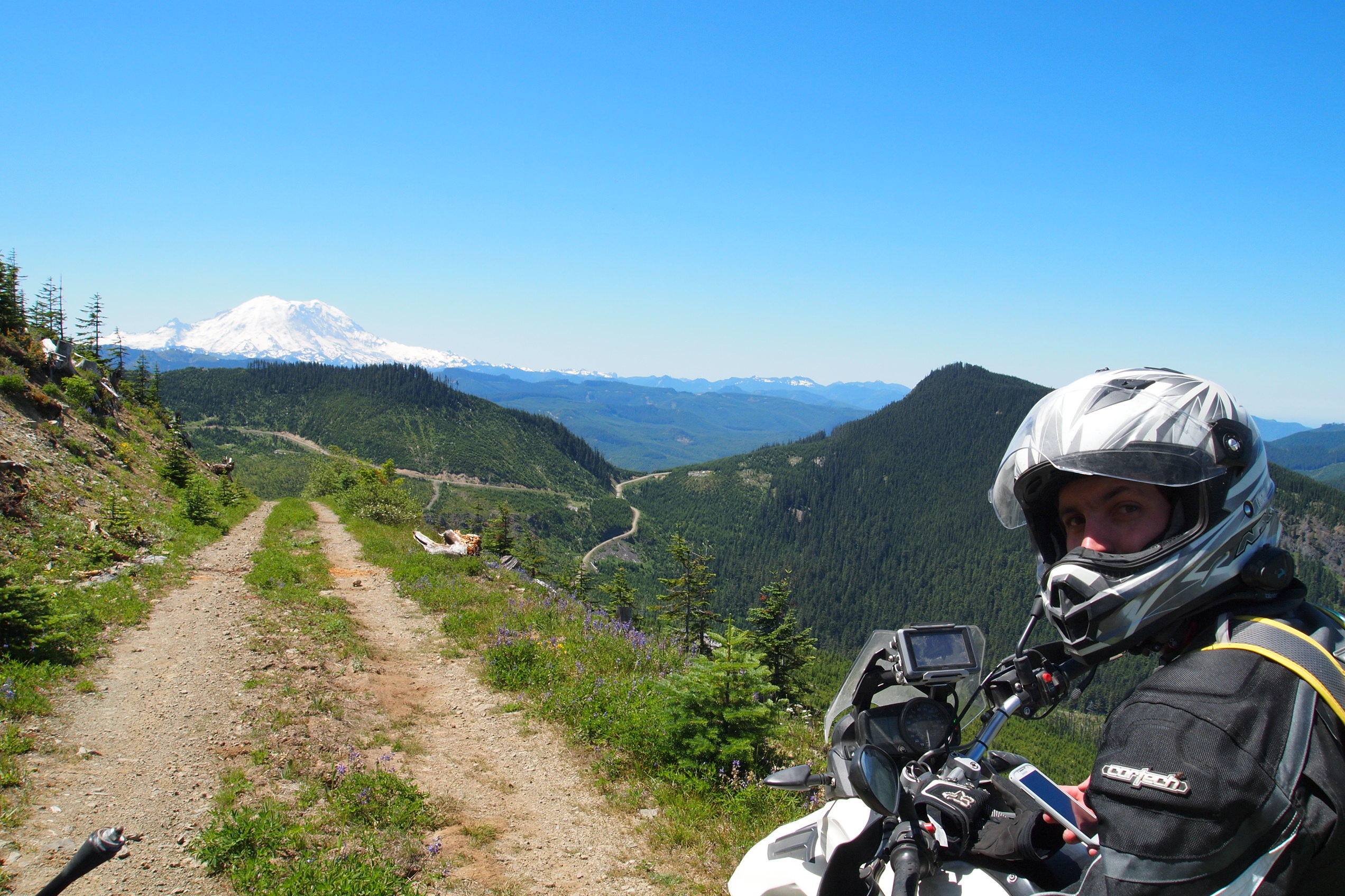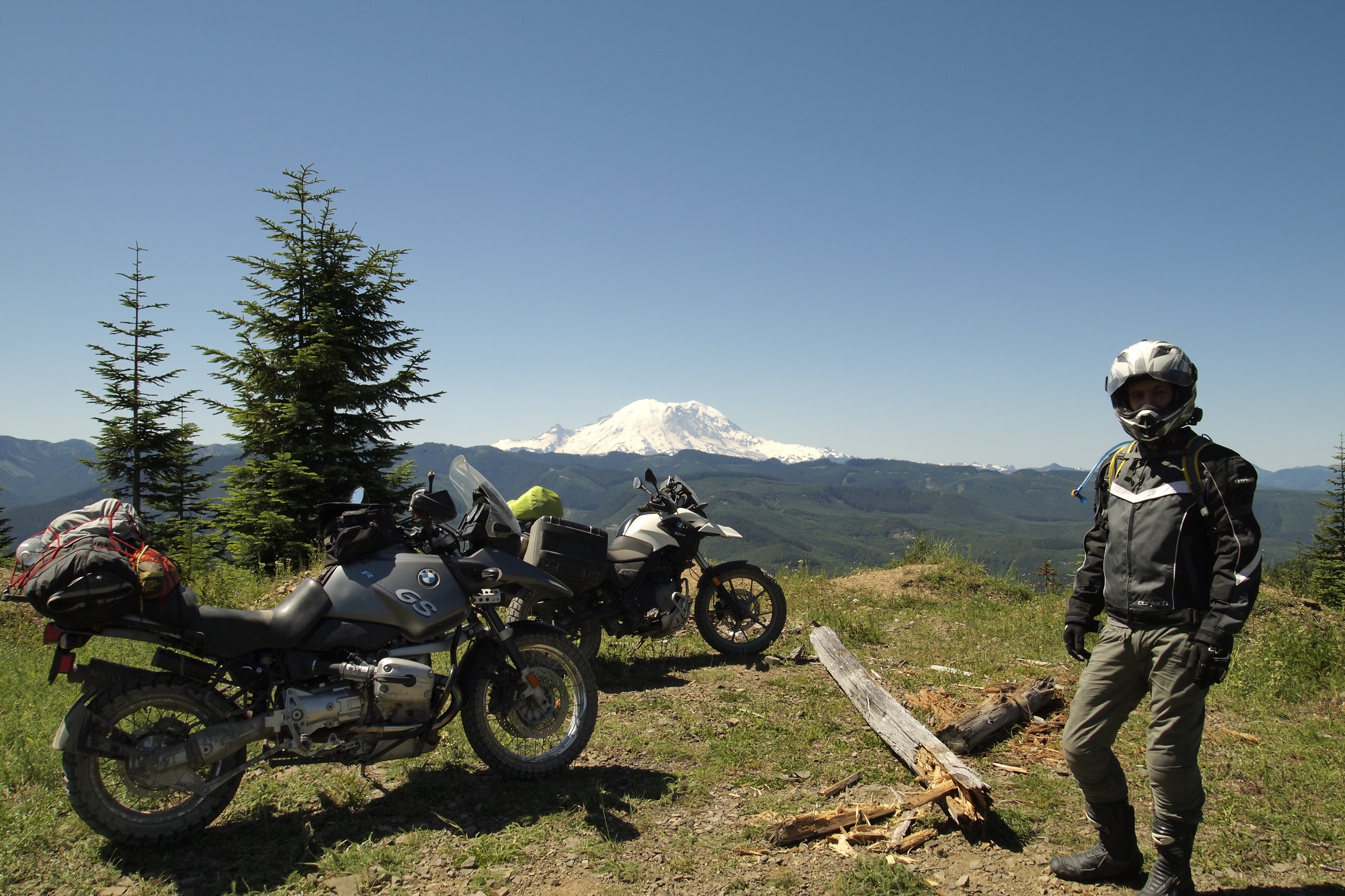Con Estaban Jaramillo nos hemos dedicado a descubrir y conocer cada rincón de este estado mientras nos emplea el Rio – Amazonas (Amazon.com) acá en Seattle, estado de Washington. Como motocilistas viajeros e inquietos, hemos explorado sus alrededores, la península olímpica, los «North Cascades» con sus picos famosos, como el Mt. Baker, y tambien la región viñera de Chelan. Sin embargo, nos habiamos demorado para visitar lo que deberia ser una de las primeras salidas motociclísticas en el estado — los alrededores de Mount Rainier.