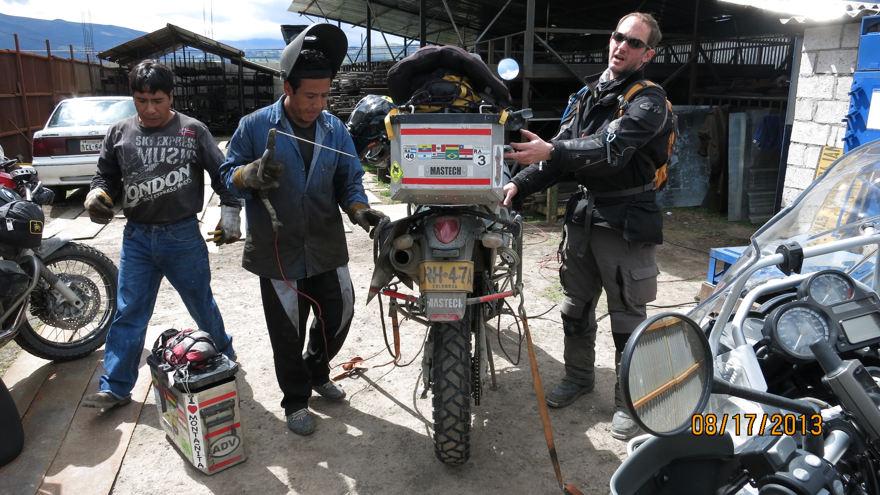 Todos estos terrenos destapados hicieron que la moto KTM de Tonny sufriera varias averias de soldadura  (maletas y exploradora). La BMW del suscrito comenzo a fallar hoy, al parecer por una tapa suelta en la terminal de la guaya del  acelerador sobre el cilindro. Ya estamos en el norte del Peru. Alcance a asustarme, pero hable con Edgar Gomez en Bogota y me dio tranquilidad para la esperada jornada que nos sigue. Cañon del Pato y las Cordilleras Blanca & Negra…