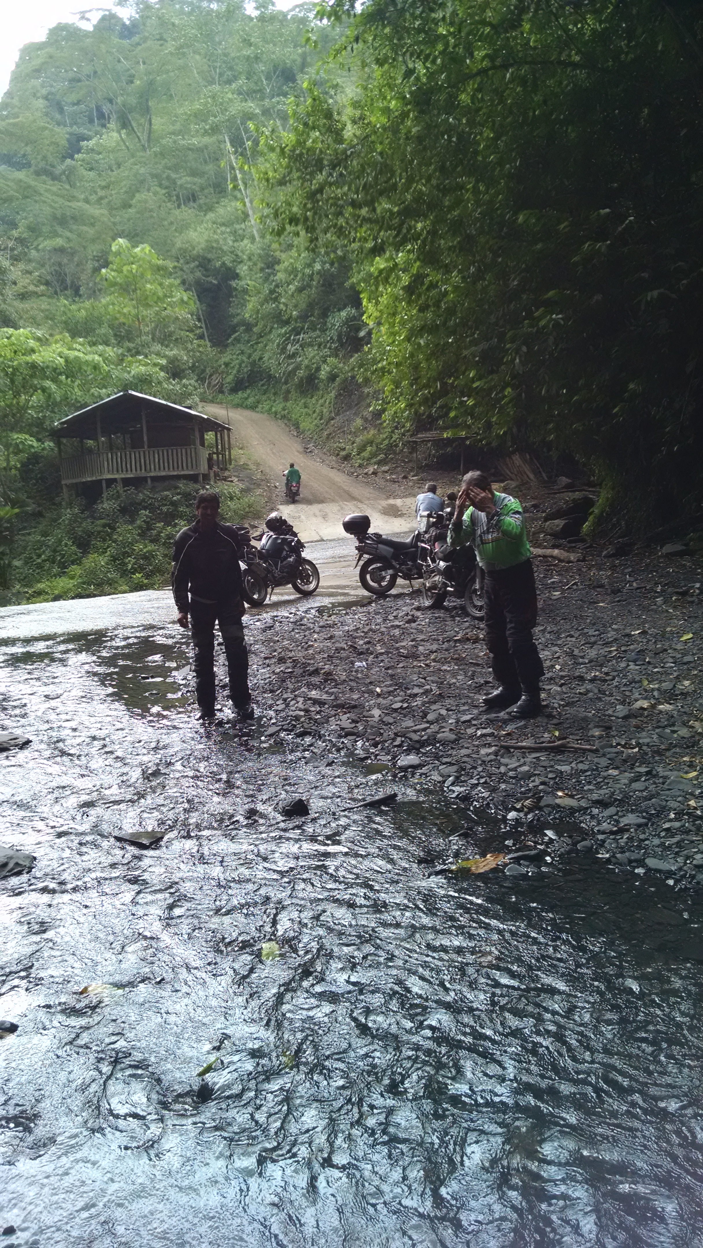Una Honda Varadero y tres BMW integramos la grilla de partida. Nicolas García, Arturo Posada, Hernando Peña y este cronista, respectivamente, salimos temprano, 6:30 AM, rumbo norte a Boyacá, por Ubaté. Como es ya tradición, hicimos la parada ritual en Colfrance para un sabroso desayuno, a orillas de la seca Laguna de Fúquene, que se niega a desaparecer y morir. Con las calorías recibidas a bordo, nos desviamos en Chiquinquirá al occidente, rumbo a Pauna. Poco a poco el asfalto se va extinguiendo por tramos, preparando al viajante para lo que viene después. Sin embargo, hasta Otanche son 120 kms desde la famosa catedral donde desviamos, el camino se mantiene con un buen promedio de asfalto ó cemento y así, sumando todos los parches sin terminar yo creo que solo son unos 20 kms los que faltan para completar el moquete de una «buena carretera». Y como en muchos otros lugares del país, le están trabajando fuertemente. A todos aquellos que les gusta el destapado, les aconsejo ir pronto, pues en poco tiempo ya no habrá off-road en esta ruta, desde Chiquinquirá hasta llegar al Magdalena Medio.