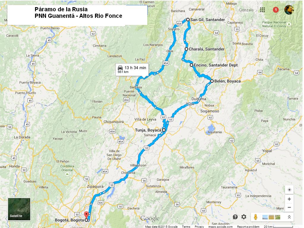 Encino es una población de clima templado, cálido que está sobre los 1.800 msnm. Para llegar desde ahí a Belén, en Boyacá, se debe cruzar el Páramo de La Rusia. Como todos los páramos de nuestra tierra, este páramo es espectacular, con alturas de hasta 4.200 msnm. Con un ingrediente adicional, que nos mejoró el día. Para llegar al páramo se debe atravesar un extenso lugar con la vegetación mas diversa, tupida y virgen que puedan imaginar. En algún recoveco del camino, un letrero nos informaba que se trata del Santuario de Fauna y Flora Guanentá – Alto Río Fonce. Los “Santuarios” son áreas especificas dentro de los Parques Nacionales donde se busca preservar especies de flora y comunidades de animales silvestres. Dicen en los folletos de PNN que hay osos de anteojos, venados y tigrillos. Sin dudarlo mucho, al observar esa espesa vegetación, creo que algunos deben quedar. Personalmente no sabía de la existencia de este parque y dentro de él, de este santuario. Es hermosísimo y muy recomendando de visitar… (Alguien me decía, “Mejor NO lo recomiende mucho, ‘deje así’, que con eso se conserva más!!!”).