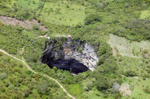 Este lugar, al norte de Chipatá pero perteneciente al municipio de La Paz, es un misterio total de la Naturaleza. Dicen los vecinos de la región, que algunos genios, sabios y científicos que los han visitado, aseguran que fue producto de un meteorito que cayó hace millones de años. Tiene unos 170 mts de diámetro y unos 200 o mas de profundidad, según lo informa la página web del municipio de La Paz. Es bueno para el turista conocer de antemano la foto-aérea de arriba, para darse una idea general de la dimensión y la magnitud de este hueco.