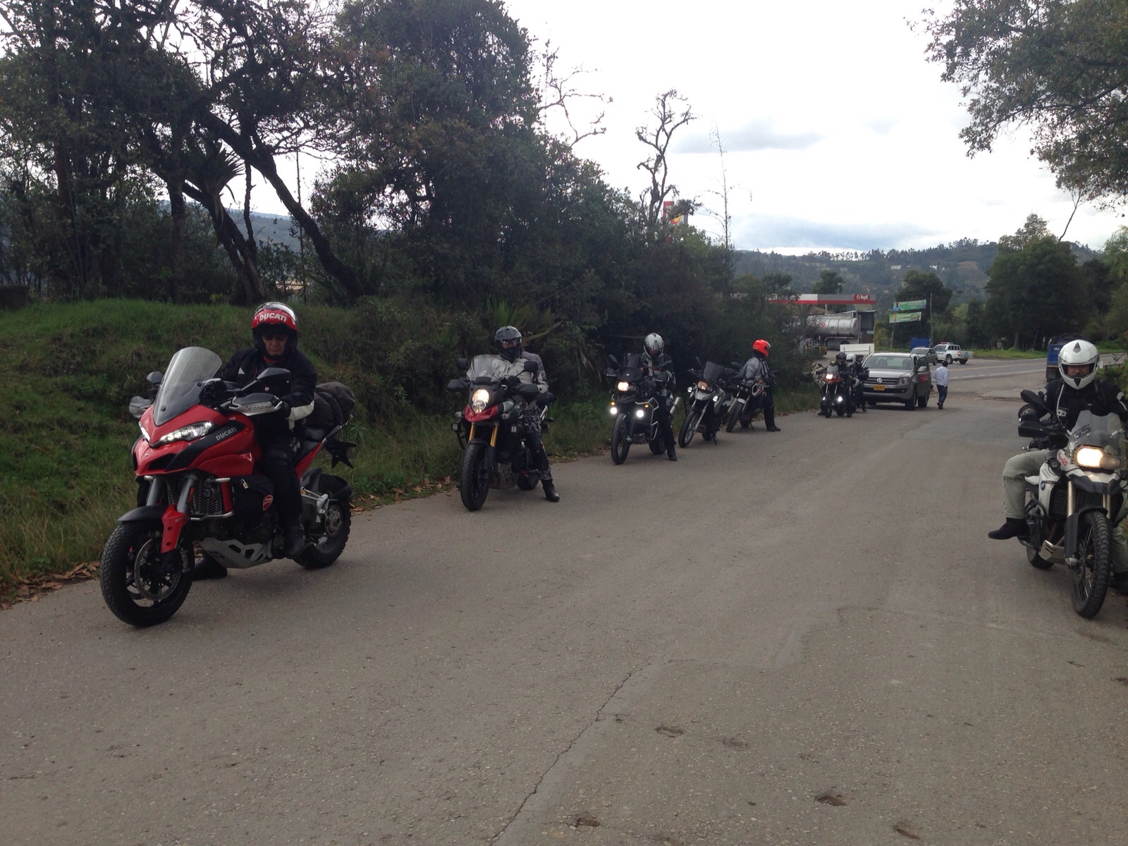 En esta oportunidad los Viajeros del Sur, con el apoyo de DUCATI, invitamos a un grupo amplio, de múltiples marcas y cilindraje variado, para que nos acompañaran hasta las Ventanas. El grupo no era tan numeroso. Sin embargo, 20 motos en cualquier caravana sigue siendo un grupo grande y llama mucho la atención. Salimos pues, como estaba previsto, a las 7:00 AM muy puntuales desde La Caro, con la idea de desayunar en Colfrance, paradero tradicional de nuestras salidas al norte.
