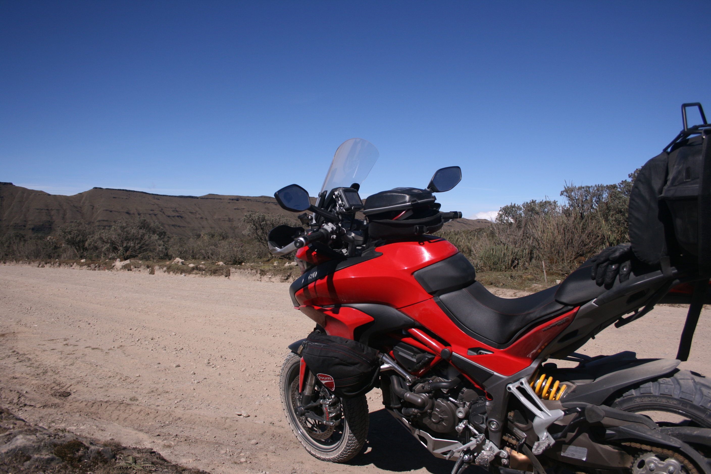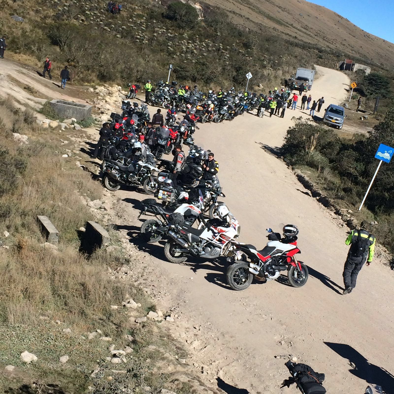 Salida Off-Road con muchas motos ? Uno piensa que esto puede llegar a ser muy complicado…. Pero se puede hacer y no es tan difícil, si se cuenta con el buen ánimo, la paciencia y disposición de los que participan !! El pasado domingo 24 de enero, 67 motos y 74 personas atendieron la invitación de Ducati y Viajeros del Sur a recorrer uno de los lugares mas espectaculares y hermosos de los que circundan la capital. Desde el inicio se planteó a los posibles participantes que la salida era un poco dura, que tendríamos un trayecto largo, algo mas de 100 kms, por caminos y carreteras sin pavimento, de los 300 kms totales.