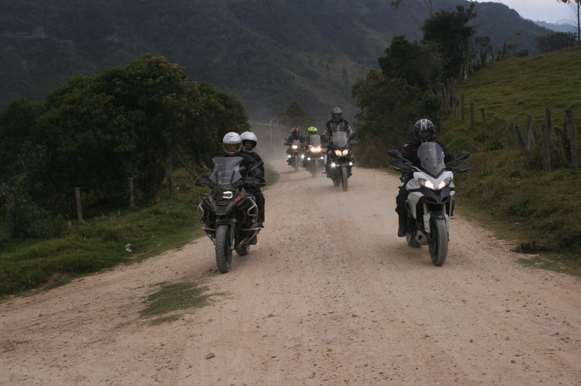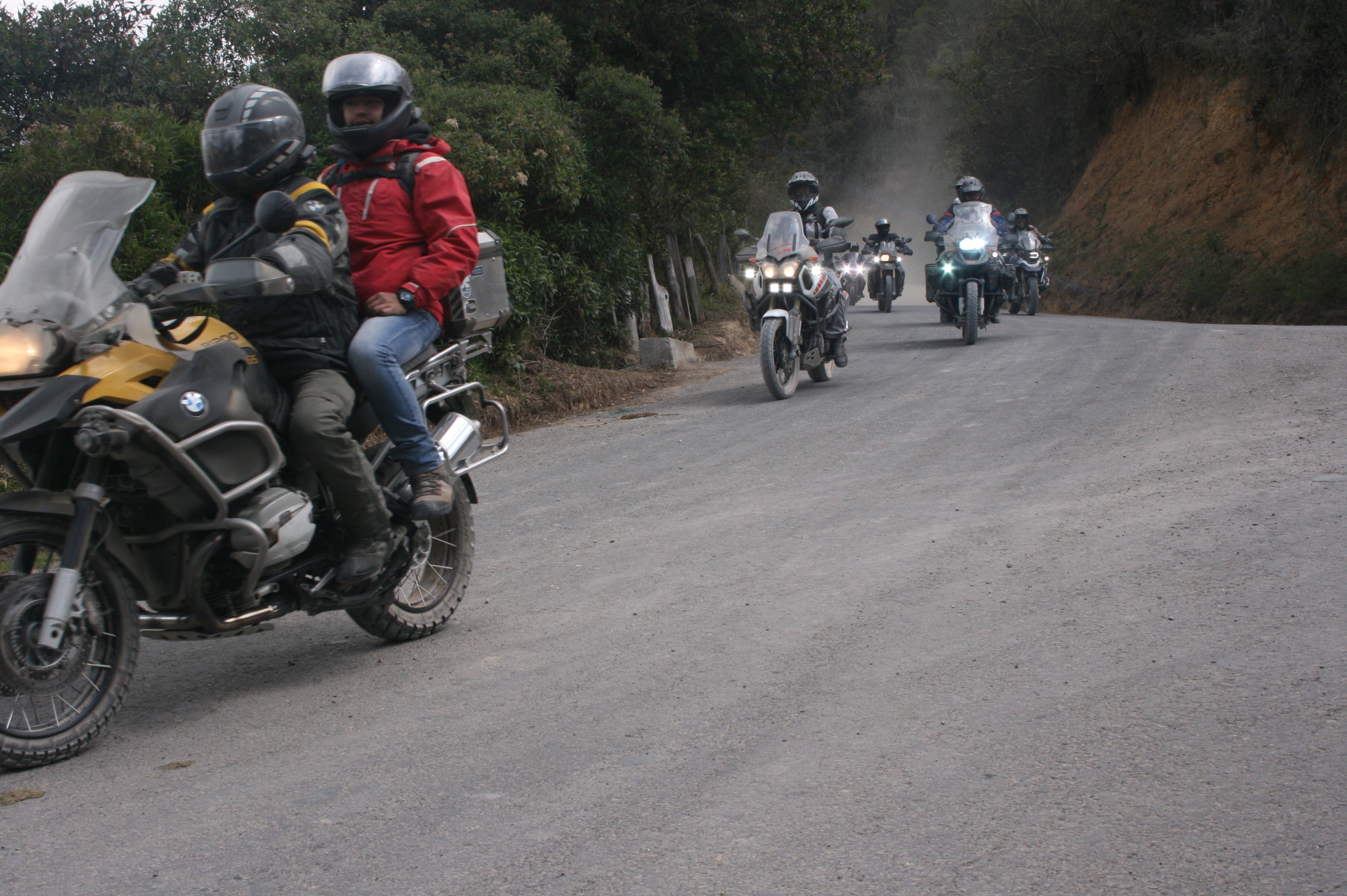 Al comenzar el descenso fuerte a Cabrera, el destapado es un poco mas complicado, por la cantidad de piedra suelta. En este trayecto hubo un par de pinchazos y otro par de resbalones sin consecuencias serias o daños graves. Sin embargo, una de estas motos rompió el depósito de liquido refrigerante. En una situación de salida/paseo clásico de amigos, éste es un daño complicado y de mucha perdida de tiempo mientras se remolca la moto, jalándola con otra moto hasta el siguiente poblado donde se pueda conseguir una camioneta ó un camión que lo lleve a casa.