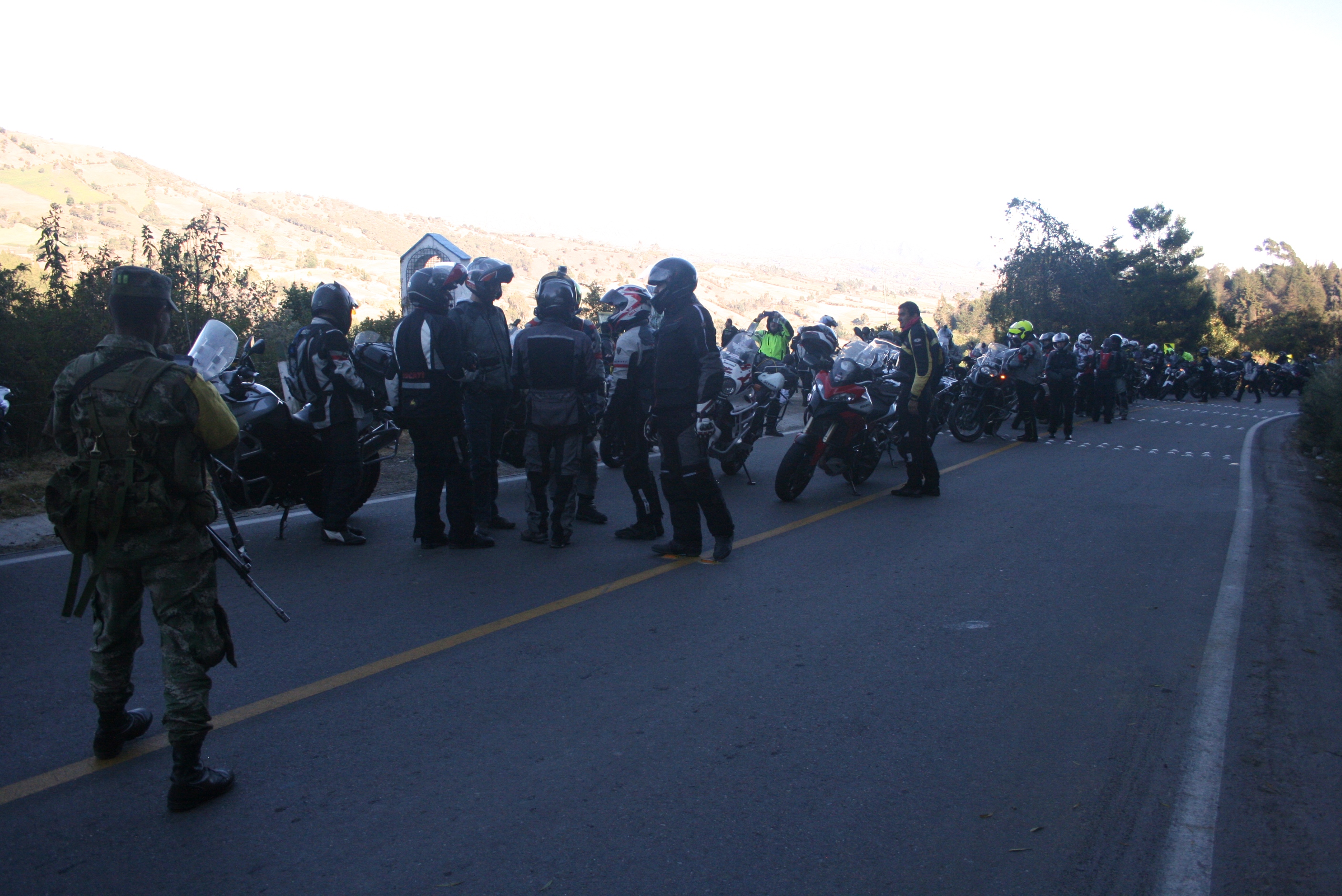 Parte de las demoras de la organización al salir consistía en elaborar una lista completa de todos los participantes, con identificación, tipo de moto, placa, etc que debía dejarse en el puesto de control del ejército. En éste calmado lugar, cuando ninguno de los viajeros demostraba afán o premura por seguir, pudimos completar los listados.