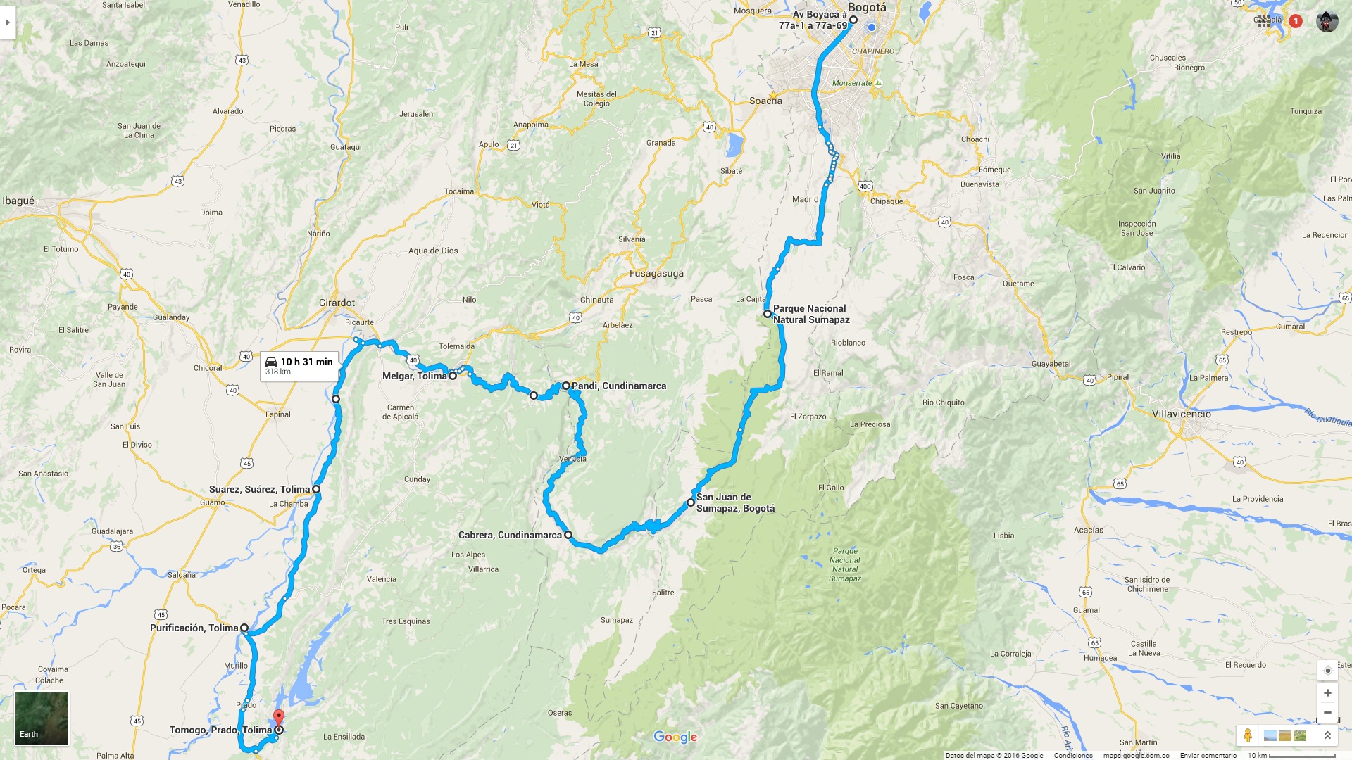 Bajamos por caminos rurales de tierra a Cabrera por la ruta conocida y en Pandi desviamos a Icononzo y Melgar donde almorzamos. A continuación, es inevitable tomar la doble calzada a Girardot en un corto trayecto;  pero tan pronto tuvimos un chance, desviamos nuevamente al sur por caminos de terrecería que nos llevaron a Suárez y Purificación. Son carreteras de penetración a hermosas fincas, usualmente ganaderas y arroceras, situadas a lo largo del valle del Río Magdalena, que personalmente no conocía.  Al caer la tarde, poco antes del anochecer y a la hora clave en que servimos de merienda a los zancudos característicos de la región, estábamos entrando al Hotel Tomogó a orillas de la Represa de Prado. En ésta primera etapa hicimos 318 kms, con unos 200 kms de tierra aproximadamente.  Ya en la noche, después de comida, llegaron Sergio Gutiérrez y Paola quienes salieron tarde de Bogotá por motivos laborales y sacrificaron los primeros kilómetros de offroad.