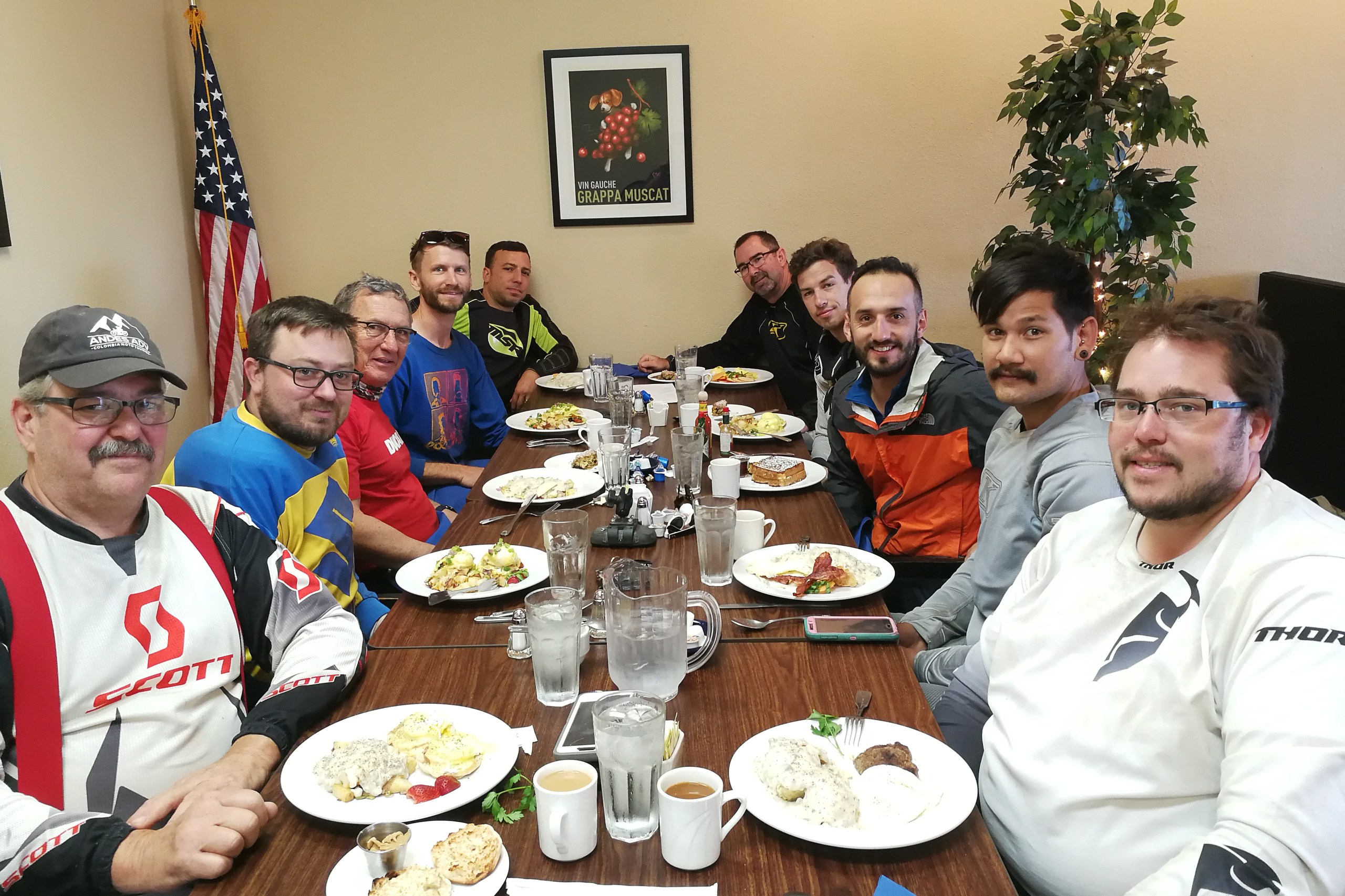 El viernes 4 de Agosto llegamos a la casa del organizador, Bradford Maynard. Una casa grande en medio del campo clásico de montaña americano: unos bosques enormes que lo hacen sentir a uno en medio de la nada, cuando realmente todo esta cerca… Con el desprendimiento y la frescura práctica propia de los americanos, recibió en su casa los 9 pilotos que con él saldríamos al día siguiente al «2017 Carson City Ride» o bien al «The Maynard 350» como le han bautizado su ya famosa y tradicional salida, pues la ha repetido en los últimos tres años para consolidarla. Todos nos fuimos acomodando, bajando las motos de los trailer y procurando no incomodar con el desorden asociado: botas, cascos, pecheras, camelbacks, aceites, herramientas, neumáticos, etc. Unos durmieron en sus camper, otros en sofas, en catres de campaña… A éste viajero por ser el invitado extranjero, le tenían reservada una buena cama.