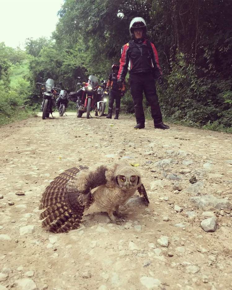 En los últimos 10 meses, no he podido completar una nueva crónica. Y no se trata de no tener que contar. Hemos hecho unas salidas bastante interesantes y con muy buenas anécdotas. No han sido muchas, es verdad. Sin embargo, nos hemos venido preparando para hacer en éste final de año una nueva travesía o viaje largo que hemos denominado «Ruta Andina 2.018». Por ejemplo, recorrimos con Catalina, en su Royal Enfield, y los amigos Posada una buena parte de Santander, Zapatoca, San Vicente de Chucurí e Hidrosogamoso, bajando despues a Barranca. Hubo espectaculares encuentros con la naturaleza, dignos de contar, como en estas fotos… Fueron tres lechuzas simultaneamente.