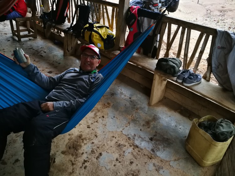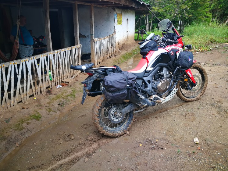 La situación nos obligó a pernoctar en una casa campesina, donde Don Isidoro, amable y locuaz viudo que vive solo a la orilla de ese carreteable, nos preparó una comida con lo que tenía disponible, patacones arroz y atun en lata. Deliciosa!! Y nos encarretó con las historias mas simpáticas que uno pueda escuchar, en su lenguaje campesino, picaresco, donde los hechos solo se insinúan y uno debe imaginar los resultados. Anafalbeta, pero músico por naturaleza. Tocaba acordeón en todas las parrandas veredales y ahí… «es cuando las muchachas se presentan y Ud. sabe… Es como en las estaciones del tren… La que se baja es porque quiere y TAN TAN !!». Eran tan especiales y tan condimentados los cuentos y las historias, que tampoco fui capaz de completar una buena crónica…