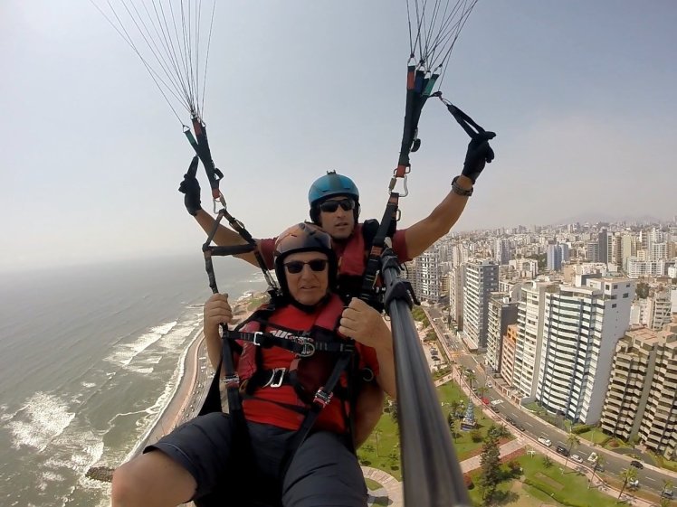 Resolvimos casi todos esos asuntos con cierta diligencia, pero nos faltaron algunas tareas básicas. Por ejemplo no pudimos lavar las motos, cómo nos hubiera gustado. En cambio, caminando por la rambla alta de Miraflores, nos encontramos con el «parapentódromo» la pista de dónde despegan y aterrizan los parapentes que vuelan sobre la playa y sobre el centro de Lima. Este deporte me encanta.