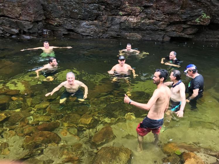 Pero en ciertos lugares sombreados son de un verde intenso que se combinan con las arenas amarillas y las piedras… Es difícil describir tanta belleza que impresiona gratamente la vista. En mi caso particular, yo había visitado Caño Cristales un par de meses atrás como turista clásico, en avión y paquete global incluido. Caminamos Caño Cristales varios días y volvimos fascinados de sus encantos.