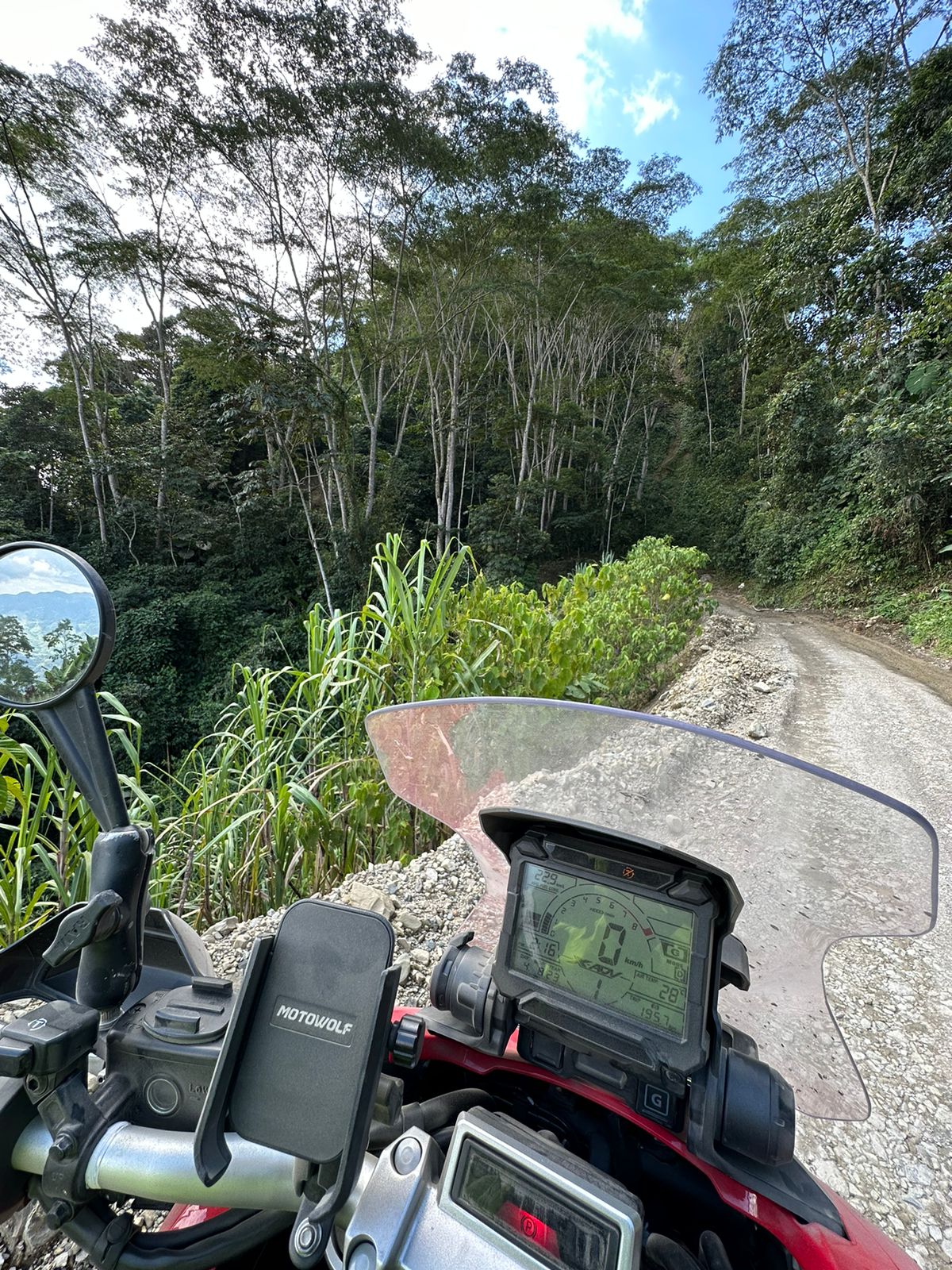 En Nare una falla en nuestras comunicaciones dividió nuevamente el grupo. Una parte hizo el cruce del Magdalena a Puerto Serviez y otros nos mantuvimos en el costado occidental haciendo el recorrido a Berrio por una carretera de baches enormes, y con una temperatura ambiente de 39°C con sensación térmica de 42°C. Un calor devastador. Y a nivel técnico-motociclistico podemos contar una anécdota: Una de las motos del grupo era Scooter doble propósito. La famosa Honda XAdv de 750 cc. Es una scooter enorme, pero no deja de ser scooter y por ello recibió unos comentarios a la salida (matoneo burlesco): “ Hummm, el Capi Andrés Mejía se vino en una moto de señoritas”. ¡Pues los de la broma debieron cerrar el pico cuando en motos KTM 1190 y en Africa Twin 1.100 DCT no pudieron superarlo en los terrenos destapados!! (¡No registramos los nombres de los otros para no hacerles quedar mal socialmente!)