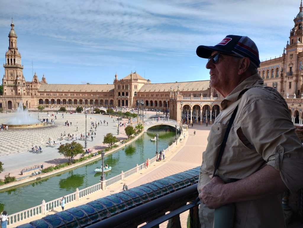Seguimos en nuestras caminatas independientes. Nos gustó mucho la moderna Plaza de España, hecha en 1920 para un evento internacional. Es también de grandes proporciones. A pesar de ser un gran atractivo turístico, con muchos visitantes diarios, ahí funciona parte de la administración municipal. También hay unas oficinas y museo de las fuerzas armadas.