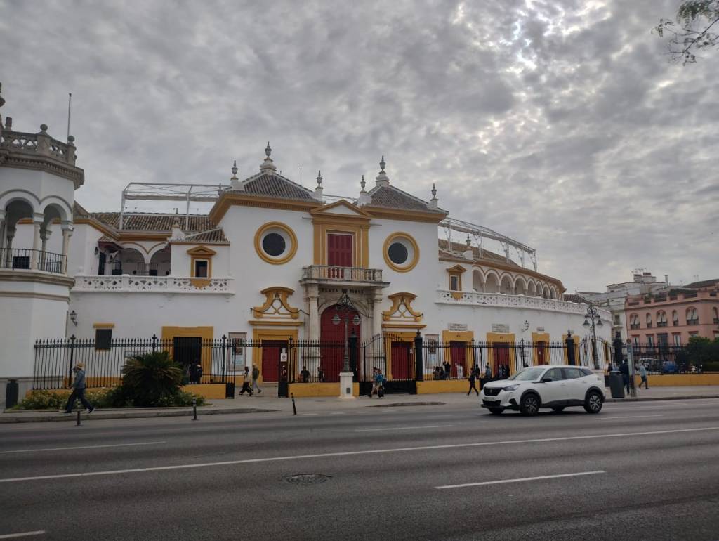 Sevilla nos recibió con el parking de moto más caro de todo el viaje. Módicos $23 Euros por día. Es realmente exagerado, pero, eran dos noches allá y la tranquilidad bien los vale. En el hotel, nos encontramos en recepción una niña muy querida. Simpática, amablemente nos ofrecía, mapa en mano, las sugerencias de turismo de Sevilla. Cuando le indiqué que mi admiración por García Lorca me llevaba a querer ver la famosa Plaza de Toros, donde algún día Antoñito El Camborio llegaba “con una vara de mimbre a ver los toros”, ella se entusiasmó… Le di en su vena poética. Y arrancó por aclararme que, aunque no le disgustaba García Lorca, el poeta es Granadino, vale? Lo de los Sevillanos era por otro lado. Sin tapujos me interpeló: “Conoce Ud a Bécquer?” Desde luego, contesté … Y le solté de memoria unos renglones de sus rimas: El clásico “Volverán las oscuras golondrinas…” Seguido de un “Los suspiros son aire y van al aire…” Se entusiasmó aún más, como era de esperarse… Ella realmente gustaba de poesía. Hacía mucho hincapié entonces para que visitáramos un parque, con un monumento a Gustavo Adolfo Bécquer. Y como era natural, surgen también en la conversación los, también sevillanos, hermanos Machado. “Mi infancia son recuerdos de un patio de Sevilla…”